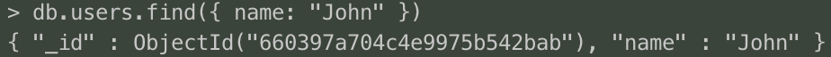 db.users.find({ name: "John" })
